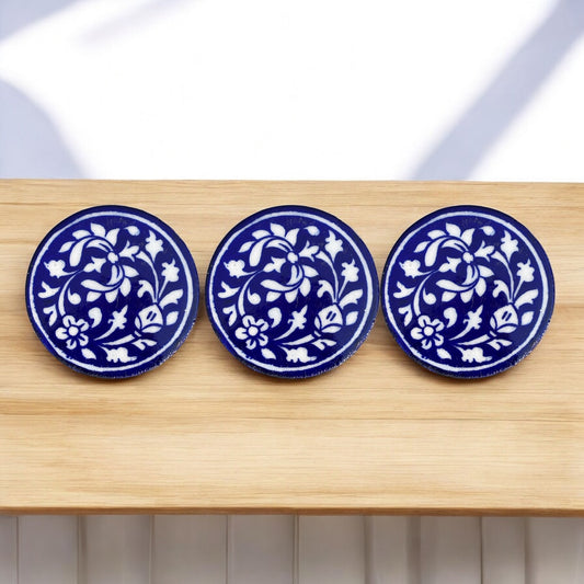Blue Pottery Coasters – Set of 6 (Handcrafted Floral Design)