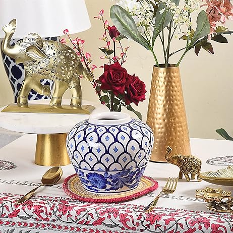 Blue Pottery Elephant Print Vase - Jar