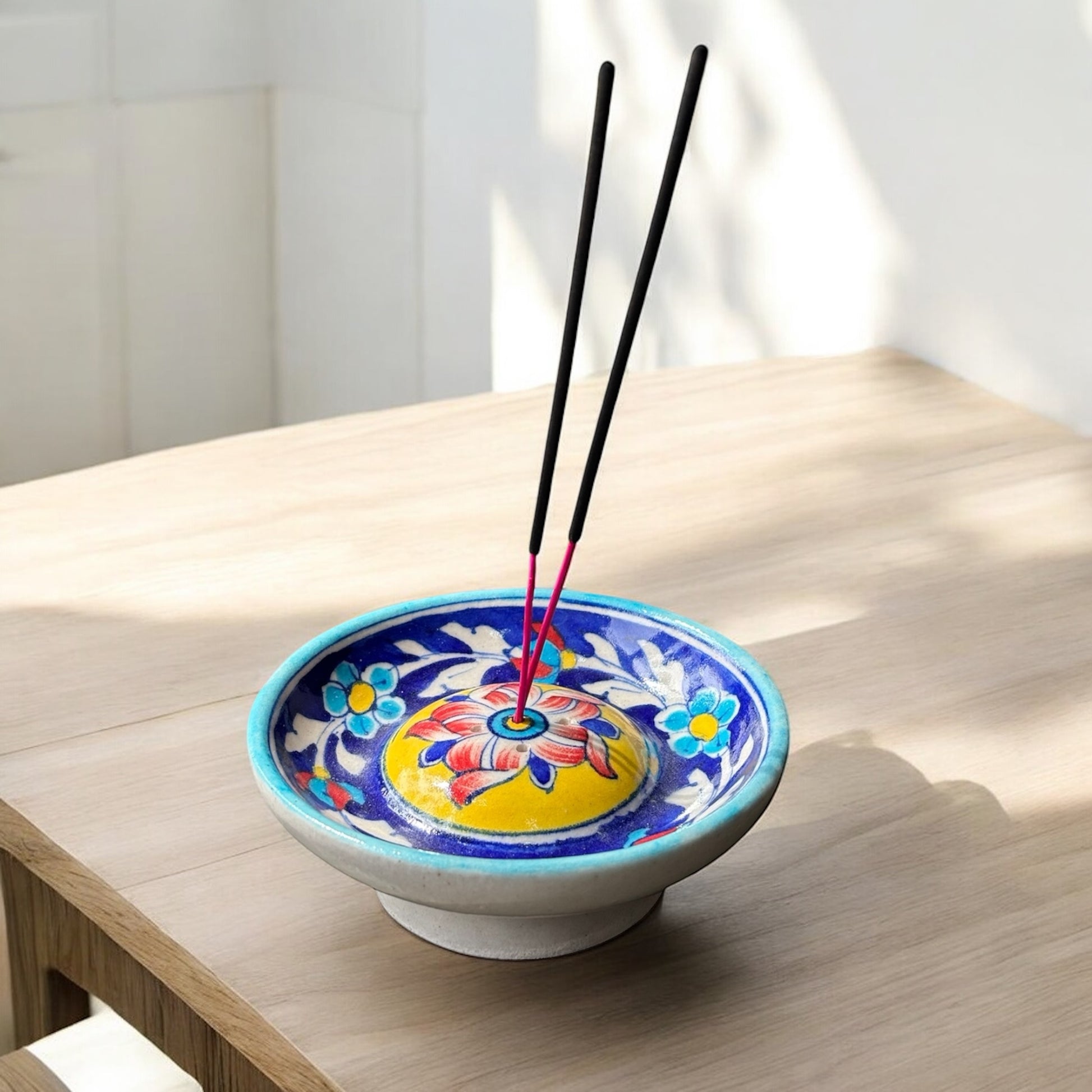 🎨 Handcrafted Elegance: A beautifully handcrafted incense holder made using Jaipur’s traditional blue pottery technique.