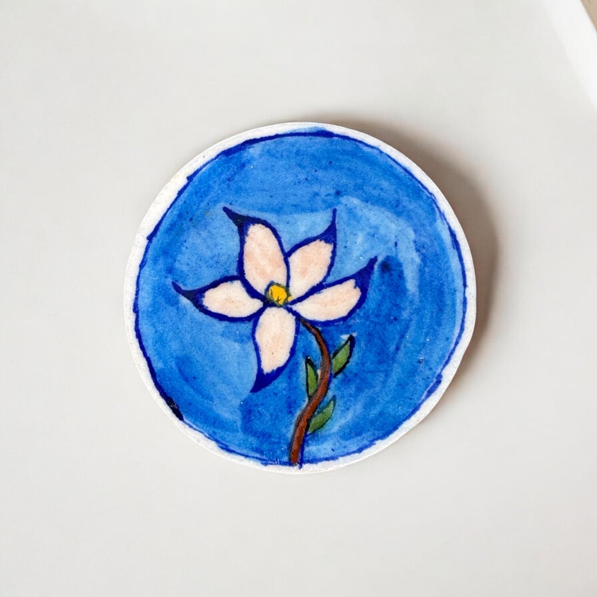Aditya Blue Art Pottery presents a handmade set of six coasters, each measuring 3x3 inches, showcasing skilled craftsmanship and traditional design.